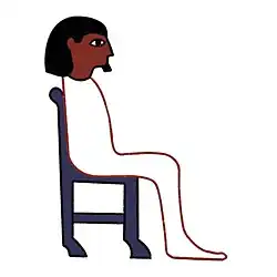 Il représente un homme (noble) assis dans un fauteuil. Il est translittéré j ou šps .