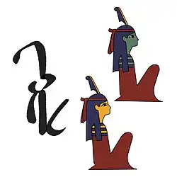 Il représente la déesse Maât assise portant la plume de vérité. Sa peau est en général jaune mais peut être verte, surtout dans un contexte funéraire. En hiératique, il est souvent remplacé par l'hiéroglyphe H6 (plume). Il est translittéré Mȝˁ.t.