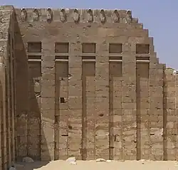 Il représente la façade significative d'architecture en niche du palais royal se prolongeant par un cadre de longueur variable représentant les murs du bâtiment en perspective cavalière. Ce motif(de) est particulièrement reprit dans l'art et l'architecture égyptienne en symbole d'appartenance à la cour royale[1],[2].