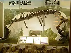 « In 1896, the author and Mr R.M. Deeley obtained the greater portion of the skeleton of a hippopotamus, together with part of the breast-bone of an elephant and of the femur of a rhinoceros, in the Derwent gravel at Allenton, immediately to the south of Derby. These bones are now in the Museum at Derby. »