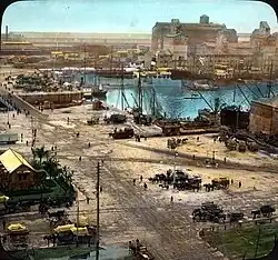 Des investissements ont été réalisés pour améliorer les installations portuaires afin d'accueillir les navires à vapeur, ce qui a permis d'éliminer un goulet d'étranglement dans les liaisons de transport et de réduire considérablement les coûts du transport maritime. Le Brésil et l'Argentine ont connu la plus forte croissance dans le domaine de la navigation marchande à vapeur, avec des navires étrangers et nationaux participant au commerce. Bien que l'amélioration des installations portuaires ait eu un impact sur les économies latino-américaines, ce sujet n'a pas fait l'objet d'études approfondies[68]. L'ouverture de nouvelles installations portuaires à Buenos Aires en 1897 constitue une exception[69]. Les innovations en matière de communication, notamment le télégraphe et les câbles sous-marins, ont facilité la transmission d'informations, essentielles à la gestion d'entreprises très éloignées. Les lignes télégraphiques étaient souvent construites à côté des lignes de chemin de fer.