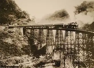 Les révolutions dans le domaine des communications et des transports ont eu un impact majeur sur l'économie. Une grande partie de l'infrastructure a été construite grâce à des financements étrangers, les financiers passant de l'octroi de prêts aux gouvernements à des investissements dans l'infrastructure, tels que les chemins de fer et l'exploitation minière et pétrolière. La construction de chemins de fer a transformé l'économie de nombreuses régions. En l'absence de réseaux fluviaux navigables, qui avaient facilité le développement économique des États-Unis, l'innovation que représente la construction de chemins de fer a permis de surmonter des obstacles topographiques importants et des coûts de transaction élevés. Lorsque de grands réseaux ont été construits, ils ont facilité l'intégration économique nationale et ont permis de relier les zones de production aux ports et aux frontières pour le commerce régional ou international. « L'augmentation des exportations de matières premières, l'augmentation des importations de biens d'équipement, l'expansion des activités qui dépendent directement et indirectement des investissements étrangers, l'augmentation de la part de l'industrie manufacturière moderne dans la production et une augmentation généralisée du rythme et de la portée de l'activité économique sont toutes étroitement liées au calendrier et à la nature du développement des infrastructures de la région »[65]. Dans certains cas, les lignes de chemin de fer n'ont pas entraîné de changements économiques importants, les zones de production ou d'extraction étant directement reliées aux ports sans être reliées à des réseaux internes plus vastes. Un exemple est la ligne construite depuis la zone de nitrate dans le nord du Chili, saisie pendant la Guerre du Pacifique, jusqu'à la côte. Les capitaux britanniques ont facilité la construction de chemins de fer en Argentine, au Brésil, au Pérou et au Mexique, avec un impact économique significatif[66],[67].