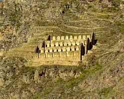 Les empires mésoaméricain et inca sont tenus de verser des tributs en travail et en biens matériels. Toutefois, contrairement aux échanges et aux marchés en Mésoamérique, l'économie de l'empire inca fonctionnait sans marchés ni monnaie. L'économie a été décrite de manière contradictoire par les spécialistes : « féodale, esclavagiste, socialiste »[6]. Les souverains incas construisaient de grands entrepôts, ou Qollqa, pour stocker les denrées alimentaires destinées à l'armée, pour fournir des marchandises à la population lors des festins rituels et pour aider la population pendant les années de vaches maigres et de mauvaises récoltes.