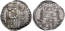 - ↑ Jusqu'alors, les monnaies frappées à Vérone suffisent, plus celles qui arrivent à Venise par le commerce, les loyers et la rapine. Cf. (en) Louise Buenger Robbert, « The Venetian Money Market 1150–1229 », Studi Veneziani, vol. 13, , p. 3–121.