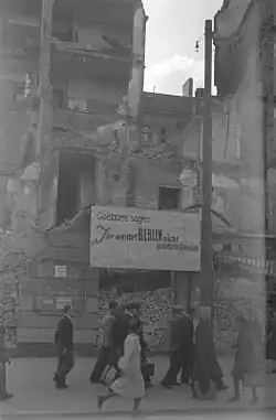 À la fin de la guerre, « les destructions et les misères humaines de l'Allemagne en 1945 sont d'une ampleur indescriptible »[4]. Les bombardements et les incendies ont détruit les grandes villes et plusieurs régions industrielles comme la Ruhr (Ruhrgebiet). Le , les Alliés effectuent leur premier raid sur la ville de Cologne. Des raids destructeurs, dont le but est de briser le moral et le potentiel industriel de l’ennemi par des bombardements stratégiques massifs, et qui laissent Cologne dans un état de ruine totale. Seule la cathédrale reste debout. À l’arrivée des troupes américaines à Cologne, la ville ne compte plus que 40 000 « habitants », contre 750 000 en 1939. La ville portuaire de Hambourg connaît un sort encore pire lors de l’opération Gomorrhe en juillet 1943. Lors des bombardements de Dresde, 650 000 bombes incendiaires tombent sur la ville, provoquant entre 30 000 et 45 000 morts dont seuls 25 000 ont pu être identifiés. Un tiers de la ville est détruit du 13 au .