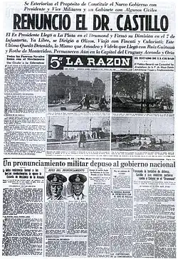 Le coup d'État militaire qui dépose Castillo a lieu le et est considéré comme la fin de la Décennie infâme et le point de départ de la Révolution de 1943. Arturo Rawson prend de facto le pouvoir en tant que président. Au cours de ses premiers jours, la nature du coup d'État n'est pas bien claire. De fait, les responsables de l'ambassade d'Allemagne brûlent leurs documents par crainte d'un coup d'État pro-allié, tandis que l'ambassade des États-Unis le considère comme un coup d'État pro-Axe[2],[3].