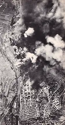 Au début du mois d', la 20th Air Force mena les bombardements atomiques d'Hiroshima et Nagasaki[12], en réponse au rejet par les Japonais de la conférence de Potsdam, qui définissait les termes de la reddition pour le Japon[19],[20]. Les deux villes furent détruites, avec d'énormes pertes humaines et un gros choc psychologique pour la population japonaise. Le , l'Empereur Hirohito annonça la capitulation du Japon par une allocution à la radio :