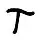 - t : toujours bas sous la hauteur d'x, avec la partie inférieure droite remontant fortement et brutalement comme un éperon ;