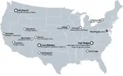 Des milliers de chercheurs, mis au secret, vont développer cette arme. Plusieurs laboratoires sont construits un peu partout aux États-Unis, comme dans le Tennessee, à Washington et enfin le plus célèbre, le LANL de Los Alamos au Nouveau-Mexique en mars 1943.