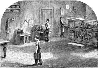 - 1 2 Éric Leroux, « Le métier d'imprimeur au Québec: 200 ans d'évolution (1764-1960) », Documentation et bibliothèques, vol. 51, no. 1 (2005), p. 114.