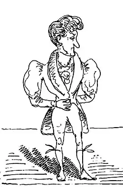 Histoire de monsieur Jabot (1833[4]), inspirée par Le Bourgeois gentilhomme, met en scène « une sorte de bouffon sot et vaniteux qui, pour s'introduire dans le beau monde, en singe maladroitement les manières »[5]. Monsieur Jabot se construit un comportement en singeant les manières d'un milieu qui n'est pas le sien « M. Jabot croit devoir approprier des gestes de bon goût à des expressions choisies. Les expressions ayant peu d'effet, M. Jabot croit devoir se refermer dans une attitude décelant l'observation fine et la plaisanterie de bon ton. » (planche 10). Il n'hésite pas à repousser son cousin Antoine qui lui sautait au cou après trois ans d'absence (planche 13) « après quoi M. Jabot reprend ses relations avec Milord et croit devoir plaisanter sur cet étrange individu » (planche 14).
