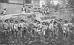 Les Juifs s'insèrent économiquement, culturellement et linguistiquement dans la société, tout en conservant leurs particularités culturelles et religieuses[63]. Si elle est lente, l'arabisation est plus rapide en milieu urbain, à la suite de l'arrivée de Juifs d'Orient dans le sillage des Arabes[62], et dans les classes aisées[66]. On les appelle « peuple de Dieu » pour les uns ou « fils de la mort » (oulad el mout) pour les autres[67].