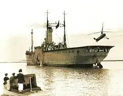 - ↑ À la suite de cette opération, le Bulwark est à son tour transformé en porte-hélicoptères d’assaut (LHA) en 1959-1960