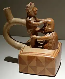 Les Moches du Pérou sont un autre peuple antique qui représenta des scènes sexuelles explicites dans leur poterie. Leur but, cependant, était bien différent des autres cultures antiques. Les Moches croyaient que le monde des morts était l’opposé exact du monde de la vie. Ainsi, en tant qu’offrandes funéraires, ils réalisèrent des vaisselles représentant des actes sexuels tels que la masturbation, la fellation et la sodomie, actes sexuels n’ayant pas pour but la reproduction. Leur espoir était que, dans le monde des morts, ils prendraient la signification opposée de la fertilité[3].