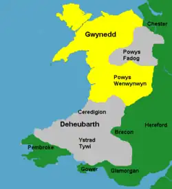 À l'époque médiévale, le pays de Galles est divisé en plusieurs royaumes indépendants gouvernés par des princes locaux. Les Normands, qui envahissent l'Angleterre au XIe siècle, ne laissent pas le pays de Galles de côté et commencent rapidement à fonder des seigneuries dans la partie orientale du pays. En réaction, les Gallois, qui contrôlent encore le Nord et l'Ouest du pays de Galles, s'unissent autour de chefs comme Llywelyn le Grand qui s'est lui-même décrit comme « prince du Nord du pays de Galles » (prince of all North Wales) en 1199[8].