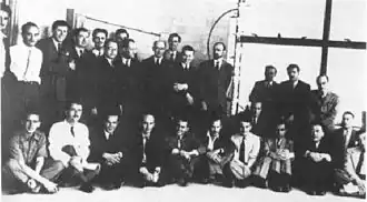 Enfin en , les Français Frédéric Joliot-Curie, Hans von Halban, Lew Kowarski et Francis Perrin[a] publient dans la revue Nature, peu de temps avant leurs concurrents américains, un article fondamental pour la suite des événements démontrant que la fission du noyau de l'uranium s'accompagne de l'émission de 3,5 neutrons (corrigé à 2,4 plus tard) qui peuvent à leur tour fragmenter d'autres noyaux et ainsi de suite, par un phénomène de « réaction en chaîne ».