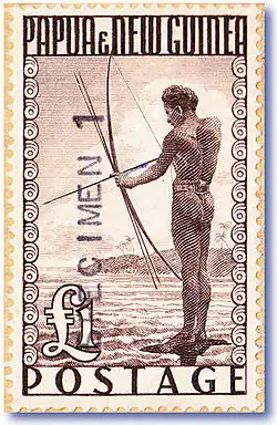 - ↑ « Papua and New Guinea » ou « Papua & New Guinea » sur les timbres jusqu'en janvier 1972.
