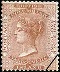 Pour sa part, l'Île de Vancouver a émis un timbre rose de 5 cents et un bleu de 10 cents avec la même effigie de la reine Victoria mais entourée d'un motif différent. Il y eut une émission non dentelée de ces 2 timbres puis une dentelée 14. Le papier portait un filigrane « Crown and C.C. ».
