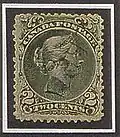 Le , le timbre de 12d imprimé en noir est émis à l'effigie de la reine Victoria. Il fut gravé par Alfred Jones qui reproduisit le fameux portrait réalisé par le peintre Alfred Edward Chalon. Bien que 50 000 copies furent commandées, seulement 1 450 furent émises. Il est donc difficile d'obtenir aujourd'hui la moindre copie même oblitérée à moins de 30 000 dollars canadiens[8].