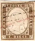 Timbre de 1855 à l'effigie en relief de Victor-Emmanuel II