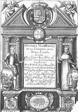 - ↑ sous le titre «Historía verdadera de la conquista de la Nueva-España. Escrita por le Capitán Bernal Díaz del Castillo, uno de sus Conquistadores. Sacada a luz por el P. M. Fr. Alonso Remón, Predicator y coronista General del Orden de Nuestra Señora de la Merced. Redempción de Cautivos