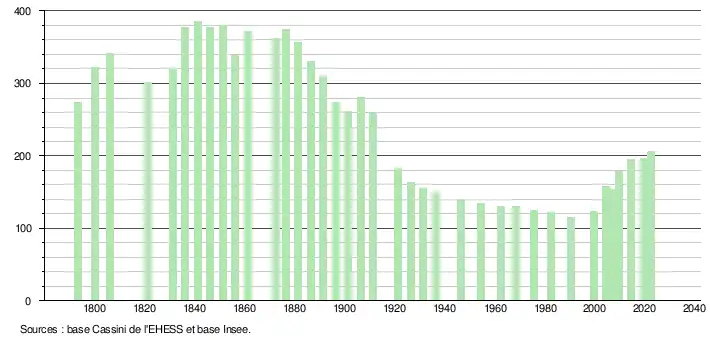 (Sources : Ldh/EHESS/Cassini jusqu'en 1999[52] puis Insee à partir de 2006[53].)