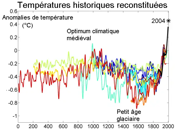 Vers , commence une période de refroidissement global, appelée néoglaciation (en). Cette dégradation serait liée à la combinaison des causes habituelles (orbitales et océaniques) et à des variations de l'activité solaire. Le refroidissement global est marqué par des cycles climatiques : l'optimum climatique médiéval qui suit le pessimum des migrations (de) et le réchauffement climatique actuel qui suit le Petit âge glaciaire[4].