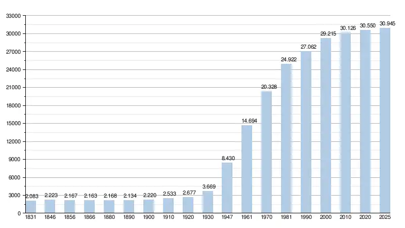 - Source : DGS - Remarque: 1831 jusqu'à 1981=recensement; depuis 1990=nombre d'habitants chaque 1er janvier[3]