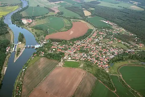 La commune est limitée par l'Elbe et les communes d'Ostrá, Kostomlaty nad Labem et Kostomlátky au nord, par Sadská à l'est, par Třebestovice au sud-est, par Poříčany au sud et par Chrást, Velenka et Semice à l'ouest.
