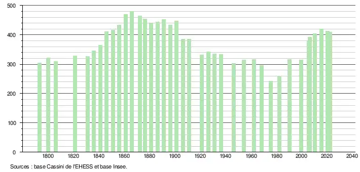 - ↑ Fiches Insee - Populations de référence de la commune pour les années 2006, 2007, 2008, 2009, 2010, 2011, 2012, 2013, 2014, 2015, 2016, 2017, 2018, 2019, 2020, 2021 et 2022.