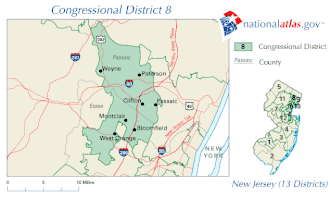 Bayonne, East Newark, Guttenberg, Harrison, Hoboken, Jersey City (en partie ; également dans le 10e), Kearny (en partie ; également dans le 9e), North Bergen, Union City, Weehawken, West New York