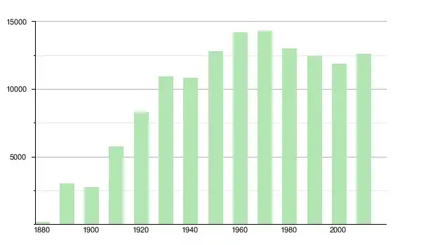 | 1980 | 13 000 | ▼ −9,08 % | |