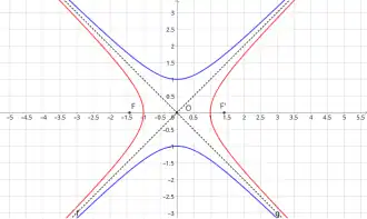 - Pour l'hyperbole avec le point fixe E = (1 ; 0) la somme des points et est le but sous la paramétrisation et cette addition correspond à l'addition du paramètre t[6].