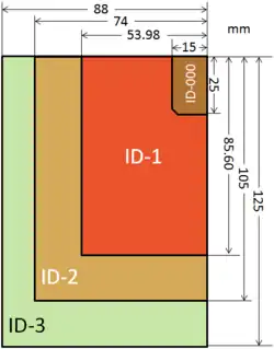 ID-000 répond au format de 25 × 15 mm. Ce format est utilisé pour les cartes SIM (format « mini SIM » – 2FF).