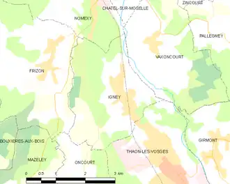 Le village d'Igney fut le théâtre d'une des premières batailles de la campagne de France, le , (connue sous le nom de «combats d'Épinal») qui opposa les troupes cosaques de l'hetman Platov alliées aux Wurtembergeois commandés par leur prince royal en personne, et les divisions des généraux français Antoine Alexandre Rousseaux et Bernard Étienne Marie Duvignau. Les Français gagnèrent cette bataille meurtrière pour les alliés et réussirent à faire leur jonction avec le gros de la Grande Armée de Napoléon Ier aux environs de Toul.