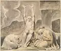 En 1826, William Blake peint une dernière œuvre sur le thème de Job, une peinture a tempera représentant Satan frappant Job d'une lèpre maligne[4].
