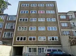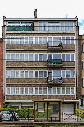 - ↑ « Immeuble à appartements à Bruxelles », sur Post-war building materials (consulté le )