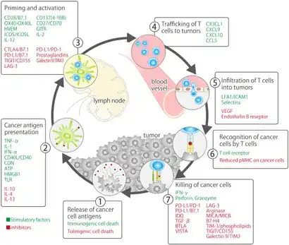 - ↑ (en) Oncology meets immunology: the cancer-immunity cycle. https://www.ncbi.nlm.nih.gov/pubmed/23890059