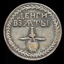 En guise de quittance, ceux-ci recevaient un jeton de bronze (qui servit également de monnaie d'échange), sur lequel l'inscription annonçait : « La taxe a été perçue » (Dengi vziaty), et l'image représentait une barbe[5]. Parfois apparaissait la devise : « La barbe est un fardeau inutile ». Les résistants au barbier étaient tenus de porter sur eux les jetons et de les présenter à chaque réquisition. Le jeton était à renouveler chaque année. Mais par la suite, beaucoup de nobles et de commerçants, trouvant la charge trop lourde, finissaient par se raser. Les plus récalcitrants étaient les gens du peuple. Ils payaient leur écot et demeuraient persuadés qu'ainsi ils étaient de « vrais mâles et de vrais chrétiens ».