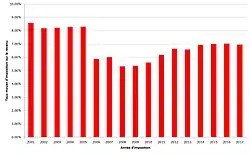 | 2016 | 37 889 181 | 16 548 541 | 43,68 % | 1 001 926 318 631 € | 70 326 998 903 € | 7,02 % | 4 250 € |