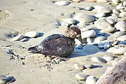 Un oiseau marin pendant une marée noire.
