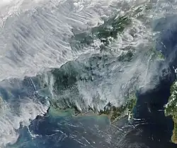 Image satellite de la brume sèche de pollution causée en 2019 à Bornéo par des incendies de forêts.