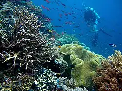 - Écosystèmes marins et biodiversité : Avec une grande confiance, les scientifiques ont conclu qu'un réchauffement de 2 à 3 °C au-dessus des niveaux de 2010 entraînerait une mortalité massive des récifs coralliens à l'échelle mondiale. De plus, plusieurs études portant sur les organismes planctoniques et la modélisation ont montré que la température joue un rôle transcendantal dans les réseaux trophiques microbiens marins, ce qui peut avoir une profonde influence sur la pompe à carbone biologique des écosystèmes marins planctoniques pélagiques et mésopélagiques[9],[10],[11].