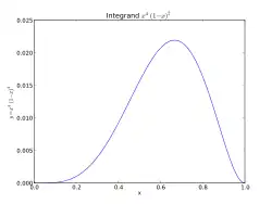 qui se trouve être la fonction bêta de paramètres (5;3), qui vaut G = 1/105 = 0,0095238095238095. Cela correspond au cas général avec a=0, b=1 et .
