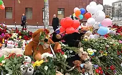 - ↑ « Количество пострадавших при пожаре в Кемерово выросло до 79 » [« Le nombre de blessés de l'incendie à Kemerovo est passé à 79 »], sur Телеканал Санкт-Петербург, (consulté le )