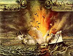 En , les États-Unis, jusqu'alors neutres, changent de politique. À la suite d'émeutes à La Havane, et pour « protéger leurs intérêts », ils y envoient le vieux cuirassé USS Maine. L'explosion du cuirassé dans la baie de La Havane, qui coule dans le port, est imputée aux Espagnols par les États-Unis. Les Espagnols n'ont très probablement rien à voir avec cette explosion, due à une panne[7]. Ils entrent alors en guerre contre l'Espagne en , marquant ainsi le début de la Guerre hispano-américaine.