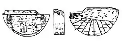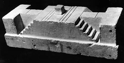 Un instrument sculpté dans le calcaire (Musée égyptien du Caire n° 33401) propose trois pseudo horloges solaires reprenant les principes exposés ci-dessus. L'« heure » était lisible alternativement sur la plateforme supérieure, sur une face inclinée et sur des gradins. Cet instrument, aujourd'hui, semble n'être qu'un modèle pour l'architecture[4].
