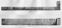 Un des plus anciens indicateurs solaires connus, très semblable à celui décrit ci-dessus, date du règne de Thoutmôsis III. Comportant non pas quatre marques mais cinq, sa capacité de mesure s'étendait à dix « heures » au lieu de huit. Il existe un second objet de ce type, plus récent de quelque cinq cents ans : « l'horloge » de Saïs (Musée de Berlin, n° 19743), possédant six marques, et dont la particularité est d'offrir un nom à chaque marque ou « heure » du matin, nom placé sous la protection d'une divinité :