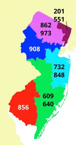 Les indicatifs régionaux 201 et 551 font partie du Plan de numérotation nord-américain.