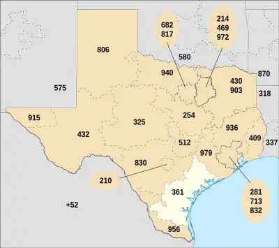 L'indicatif régional 361 fait partie du plan de numérotation nord-américain.
